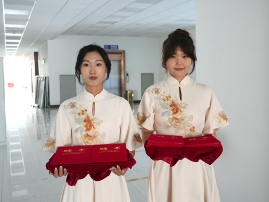 2023届员工干部代表与2024届员工干部代表交接团旗。