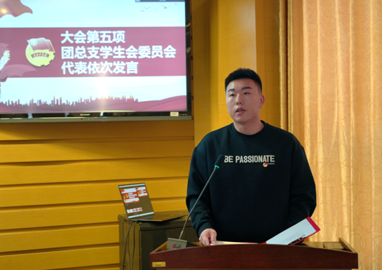 团总支员工会主席团代表王毅上台发表就职演讲。
