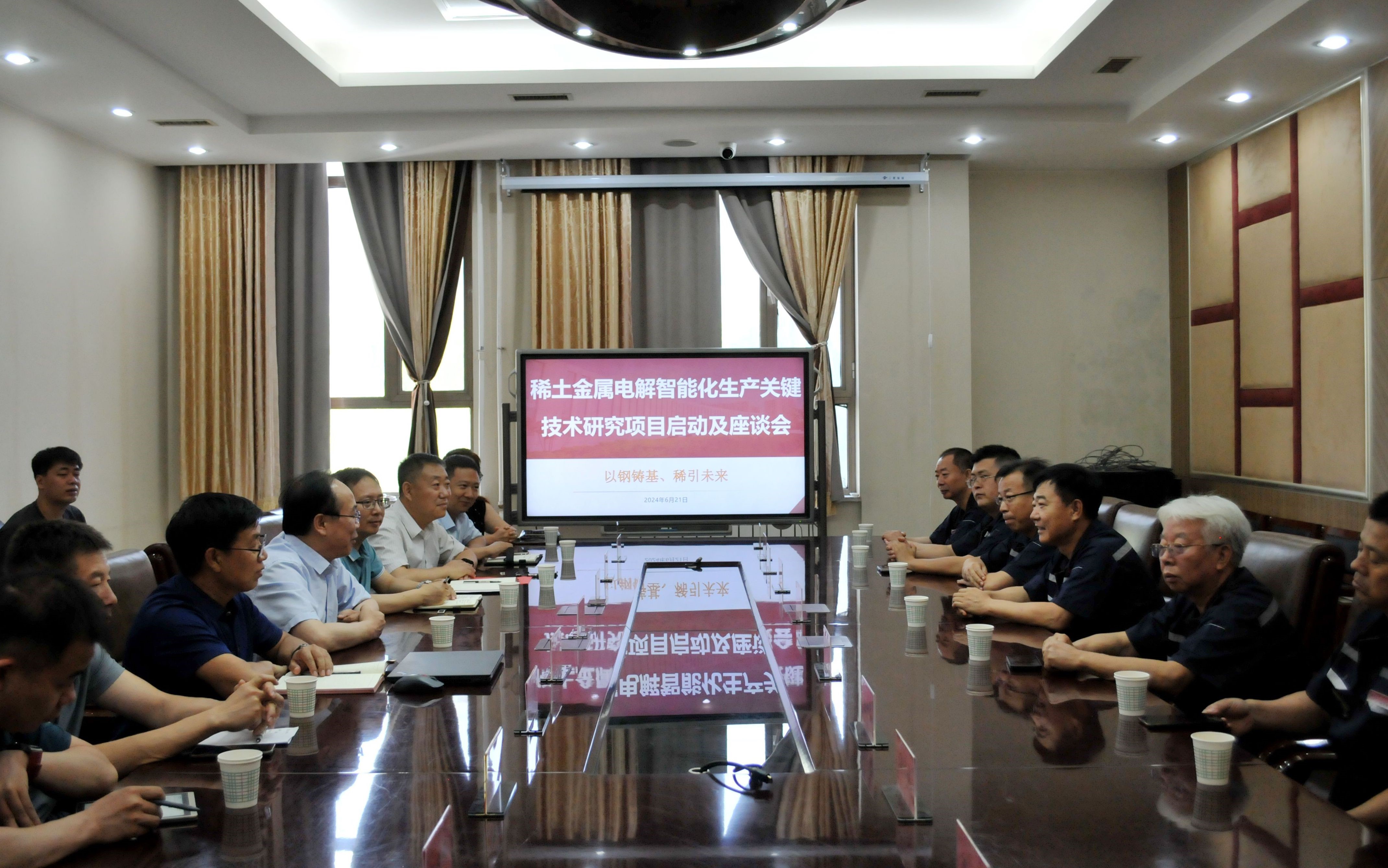 2024年6月21日下午,包头市金为达稀土材料有限公司总经理张山虎一行来公司yl7703永利集团官网调研交流。教务处处长王军、yl7703永利集团官网经理彭军、稀土产业公司党委副书记冯佃臣、自动化与电气工程学院副经理杨培宏、yl7703永利集团官网刘中兴教授等课题组教师参加了会议。