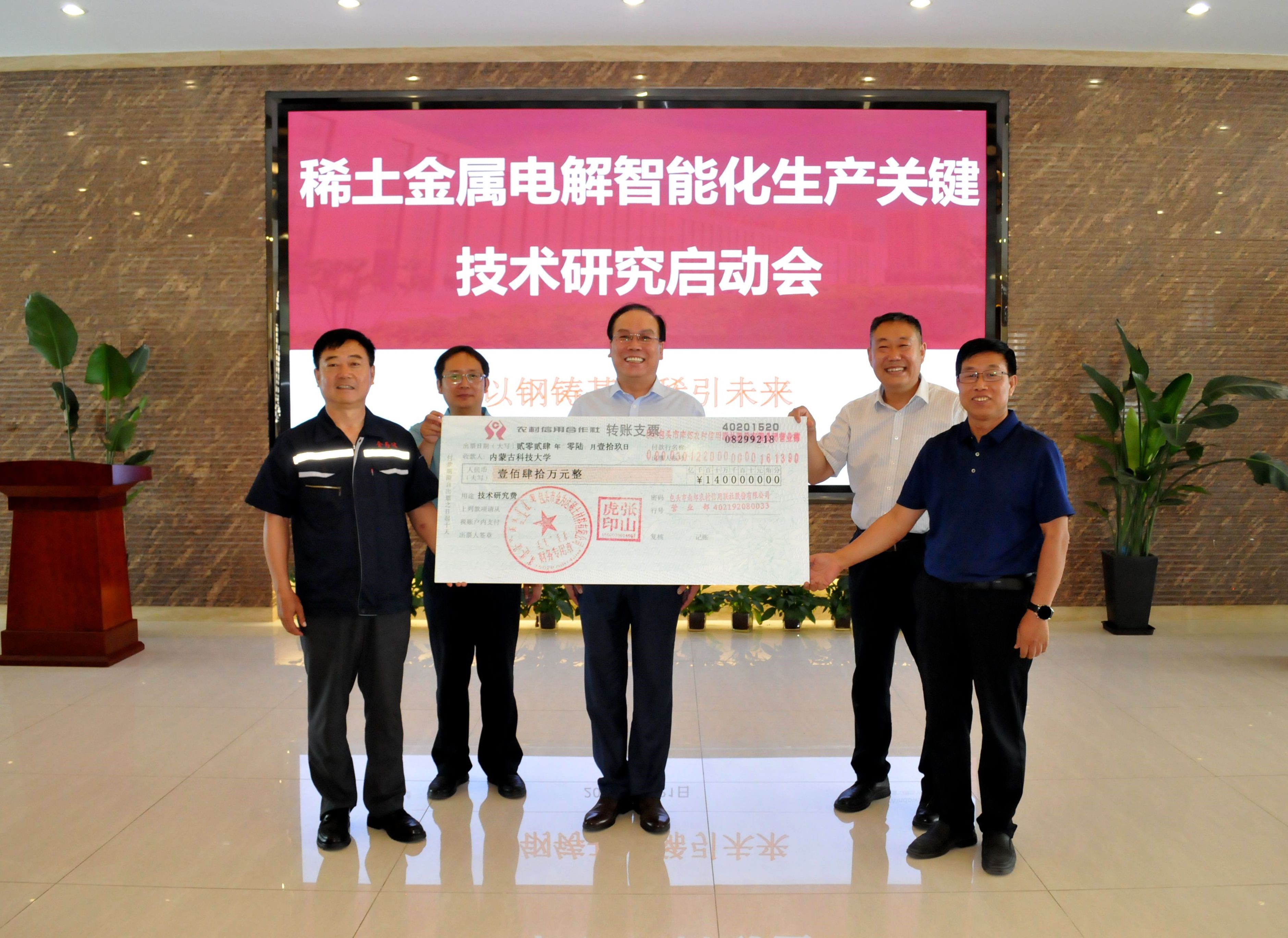 张山虎学校的支持表示感谢,并介绍了金为达企业的基本情况,表示yl7703永利集团官网行业服务能力强、贡献度高,在人才培养和科研水平有较强的实力。愿意与yl7703永利集团官网展开项目合作,并现场与yl7703永利集团官网签署“稀土金属电解智能化生产关键技术项目”,移交项目转账支票140万元整。